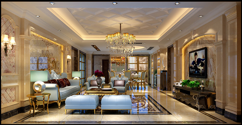 欧式风格室内装修效果图-龙光玖珑湖三居136平米