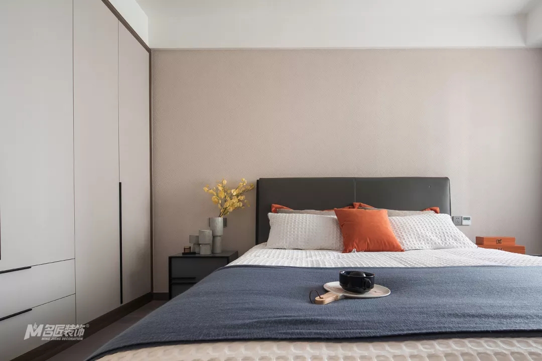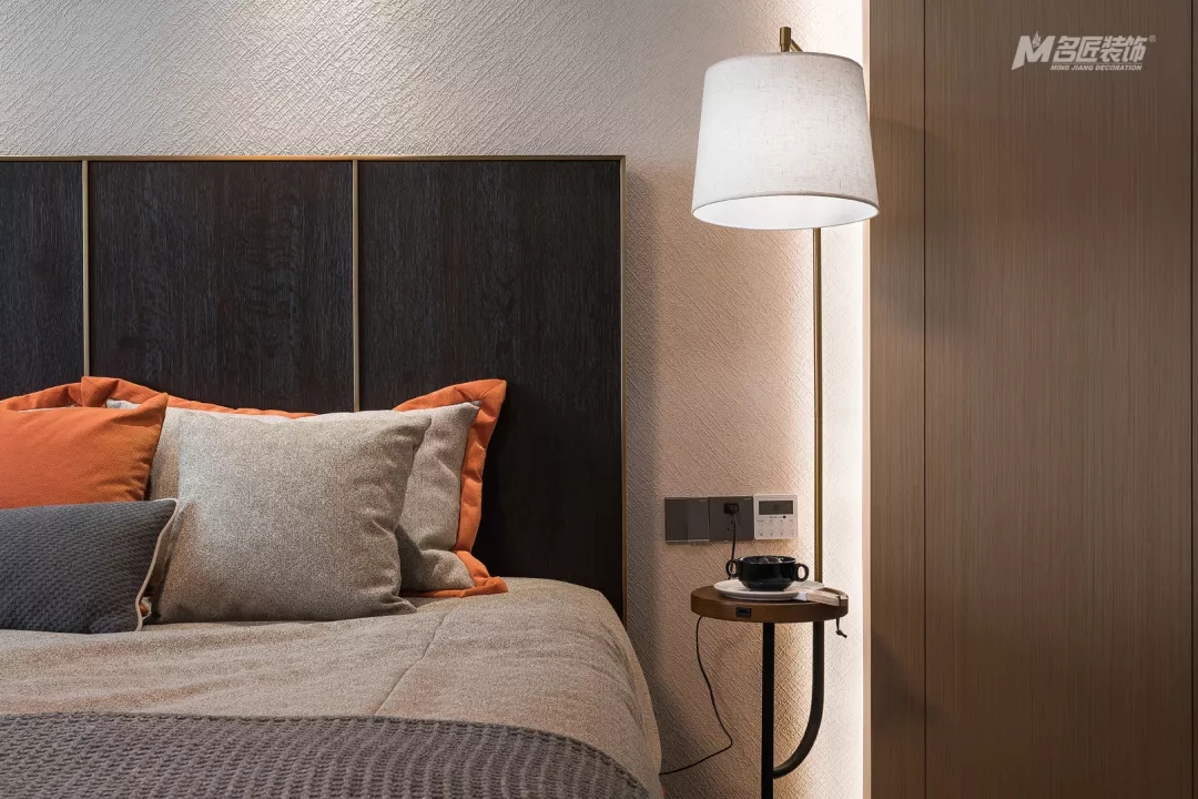 主卧的吊灯简约时尚,整个房间的设计简单但很有质感和品味。