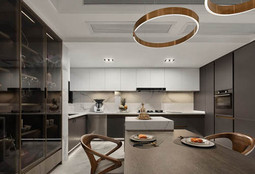 设计师将客厅阳台拆除与客厅连通,在以空间互动的前提下拒绝不必要的空间串联,松弛有度有收有放,改而择优的功能利用,纳入与客厅所邻阳台,非一板一眼的面也给空间带来更多的可观性。